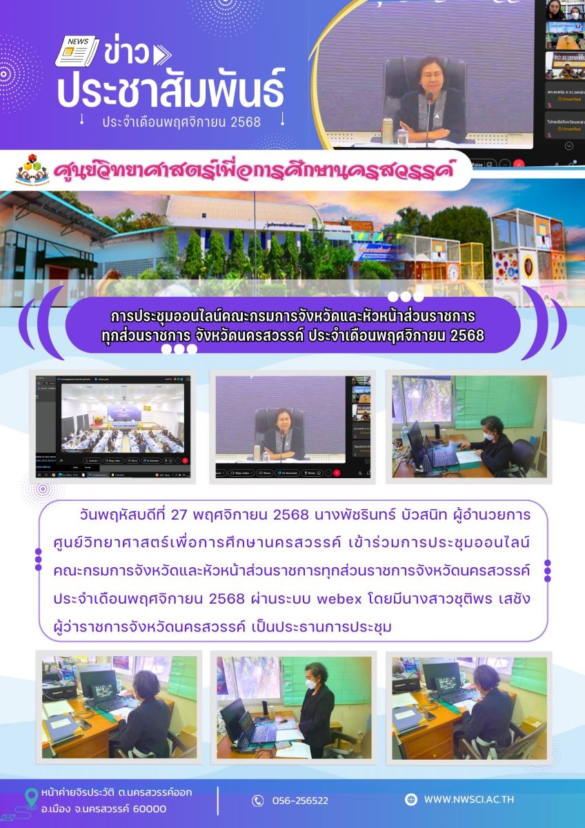 การประชุมออนไลน์คณะกรมการจังหวัดและหัวหน้าส่วนราชการ ทุกส่วนราชการ จังหวัดนครสวรรค์ ประจำเดือนพฤศจิกายน 2568 โพตส์เมื่อ : 2025-11-28 19:06:57 2 ครั้ง