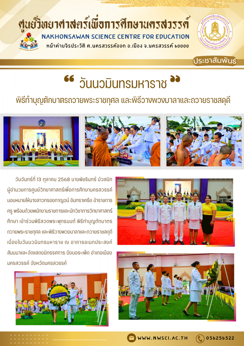พิธีทำบุญตักบาตรถวายพระราชกุศล และพิธีวางพวงมาลาและถวายราชสดุดี เนื่องในวันวันนวมินทรมหาราช โพตส์เมื่อ : 2025-10-14 10:18:54 9 ครั้ง