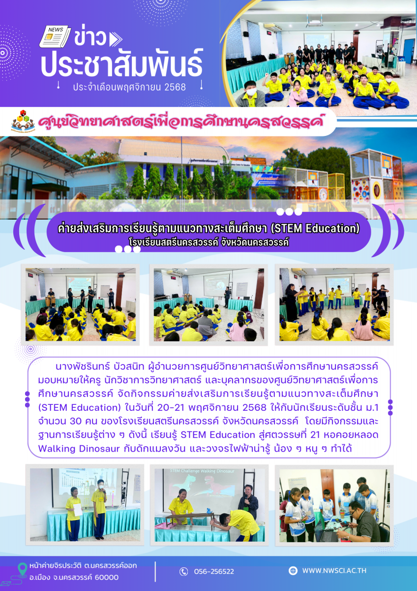 ค่ายส่งเสริมการเรียนรู้ตามแนวทางสะเต็มศึกษา (STEM Education) โรงเรียนสตรีนครสวรรค์ จังหวัดนครสวรรค์ โพตส์เมื่อ : 2025-11-21 16:16:56 3 ครั้ง
